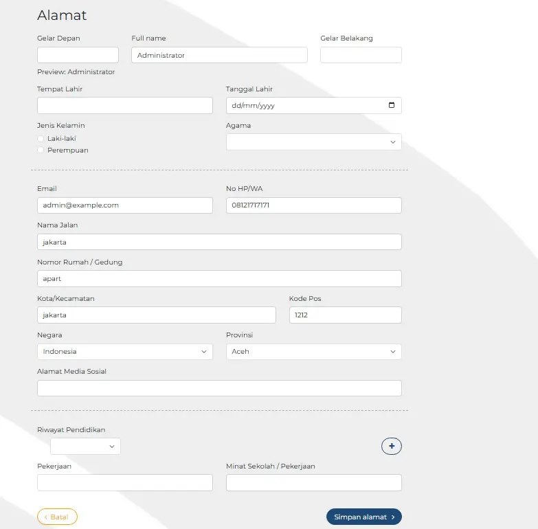 Isi formulir data diri dengan lengkap dan benar. Kemudian Klik Simpan Alamat.