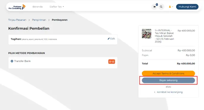 Setelah Accept Terms & Conds, klik Bayar Sekarang untuk melanjutkan proses pembayaran.