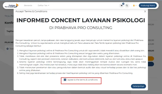 Klik Accept Terms & Conds, centang pada kotak kosong, lalu klik Selanjutnya.